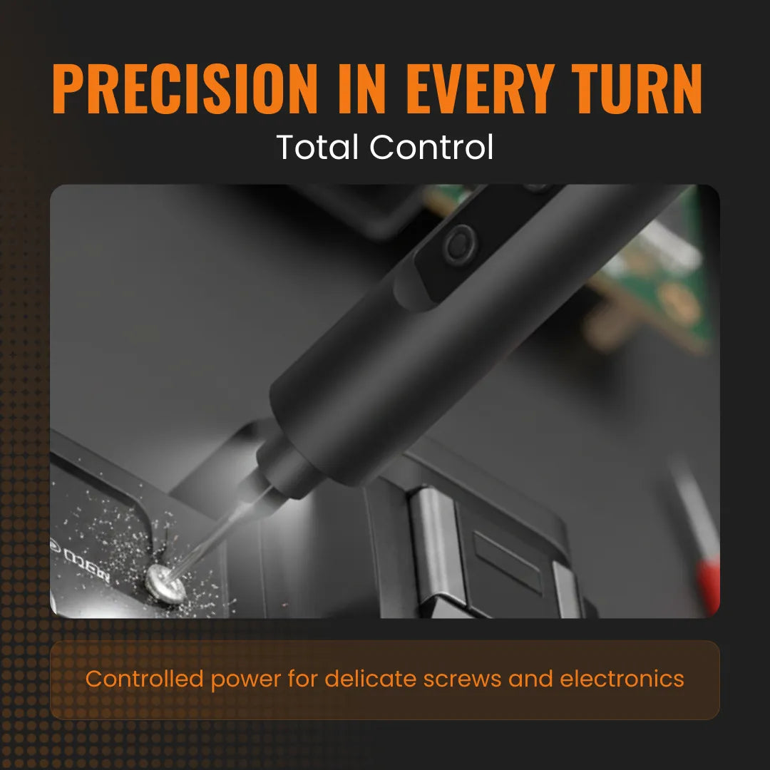 The Almighty Mini Screwdriver 45 in 1™ is made for small, delicate repairs where control matters most. With 5 adjustable torque levels, you choose the exact power you need for every screw. No more over-tightening. No more stripped screws. Electric mode makes repairs fast and smooth, while manual mode gives you extra strength when needed. The 42 precision bits ensure you always have the perfect fit for phones, consoles, glasses, and small gadgets. This smart torque system gives you safe, steady power — so you can repair with confidence every time.